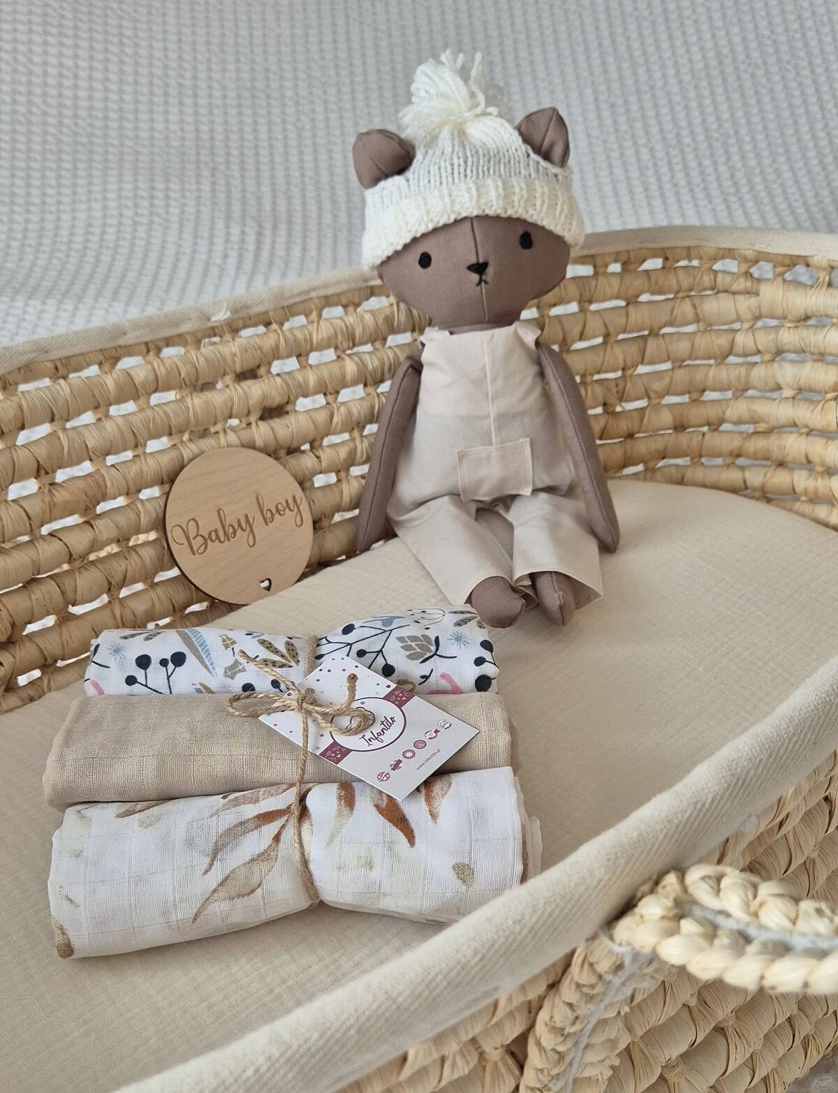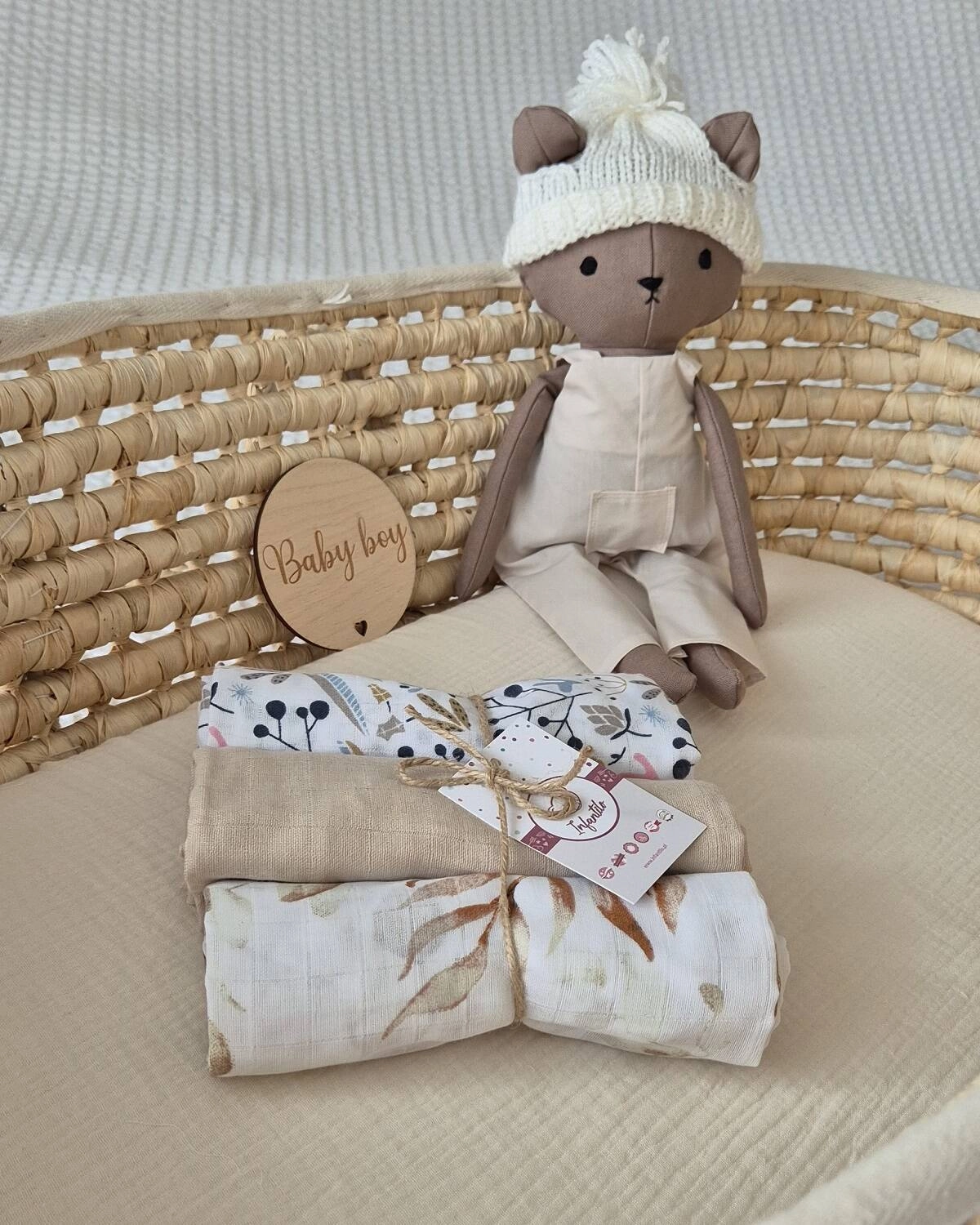 Muślin jest to dwuwarstwowa tetra z 100% bawełny, cechująca się niezwykłą lekkością i przewiewnością. Pieluszki z tego materiału mogą być wykorzystywane jako otulacz, lekki kocyk, podkład do przewijania, prześcieradło czy podręczny ręcznik.