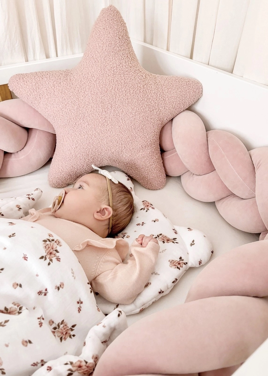 - Poduszka w kształcie gwiazdki uszyta obustronnie z mięciutkiej tkaniny o strukturze baranka/boucle. Będzie stanowić piękną dekorację każdego dziecięcego pokoiku.