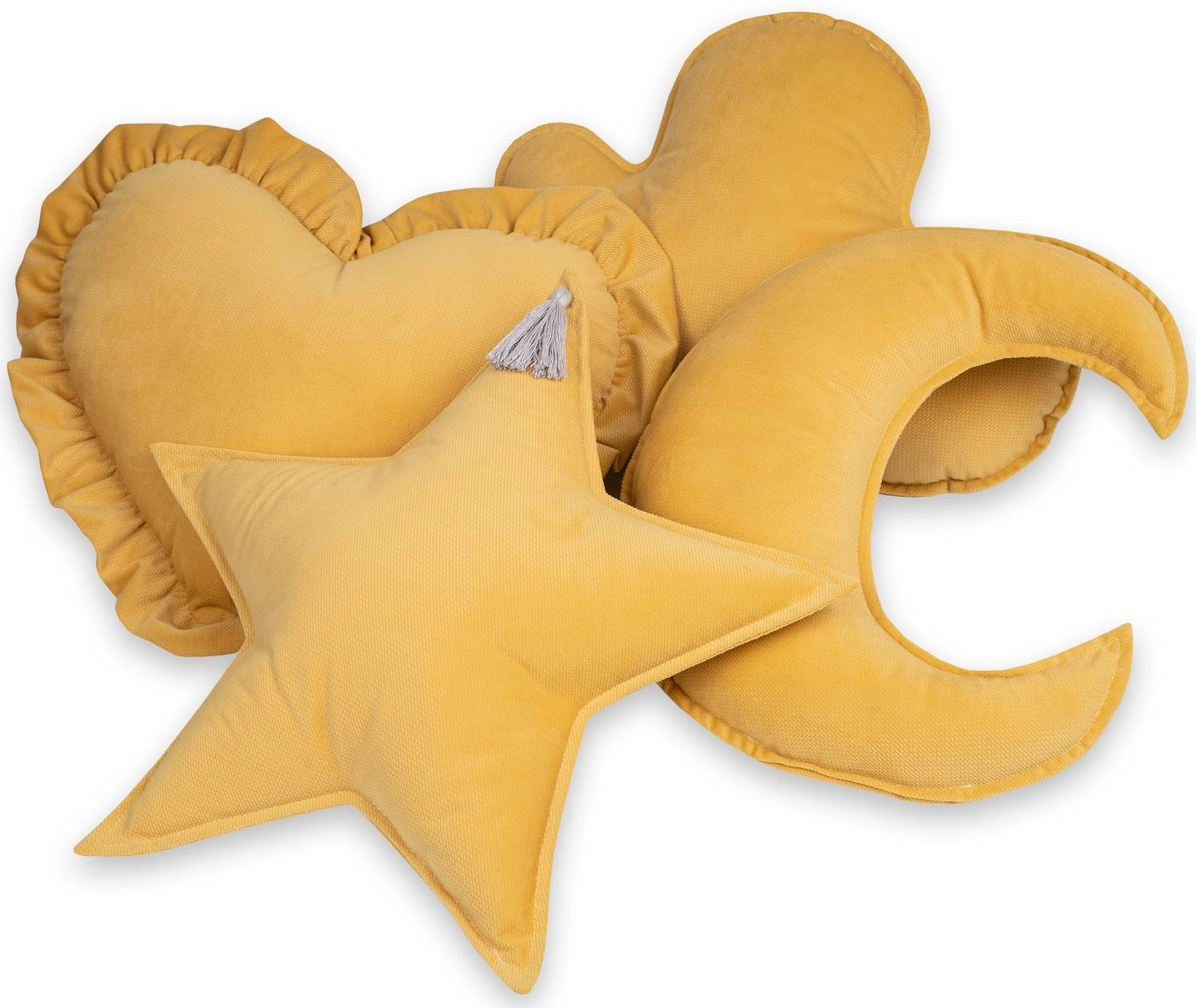 - Poduszka w kształcie serca uszyta obustronnie z mięciutkiego velvetu i obszyta dekoracyjną falbanką. Będzie stanowić piękną dekorację każdego dziecięcego pokoiku.