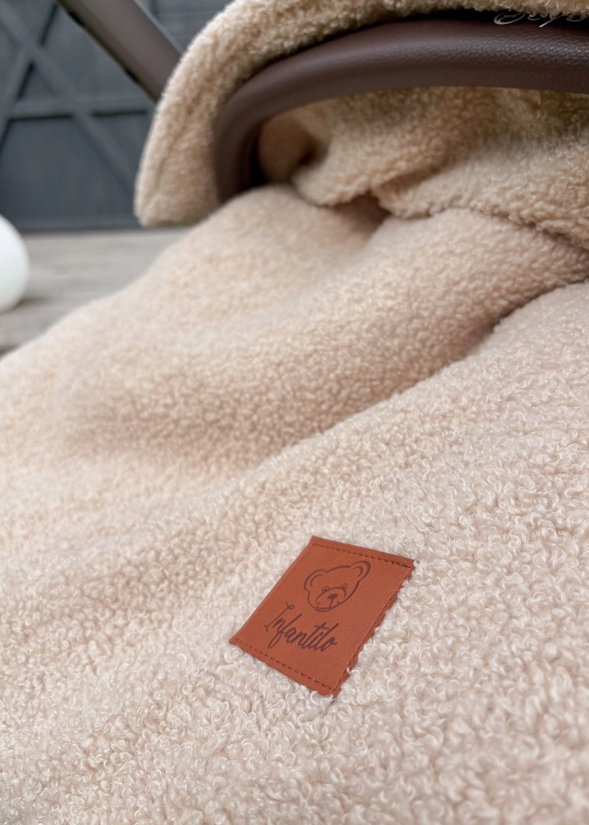 Uszyta z obu stron z najwyższej jakości tkaniny o strukturze baranka/boucle.