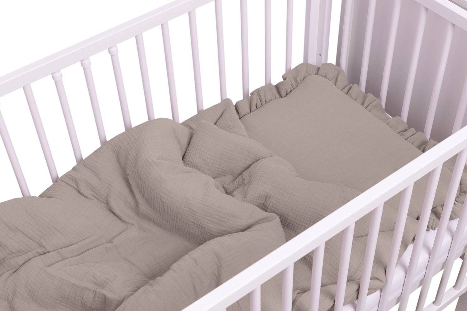 POŚCIEL MUŚLINOWA z falbanką 120x90 kołderka + poduszka WYPEŁNIENIE
