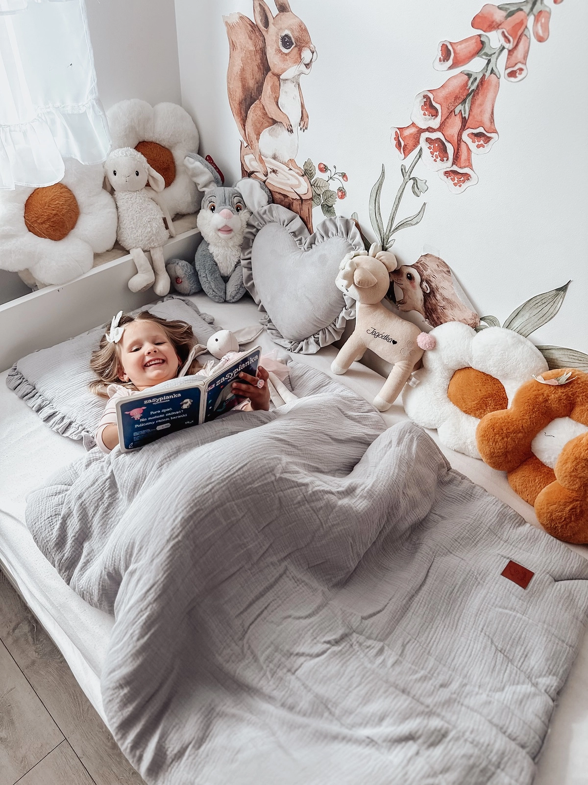 Miękkość oraz delikatność muślinu sprawiają, że idealnie nadaje się dla maluszków już od pierwszych dni życia. Dzięki swojej lekkości i przewiewności zapewni dziecku komfort termiczny podczas snu. Muślin w kontakcie ze skórą jest dużo delikatniejszy niż klasyczna bawełna.