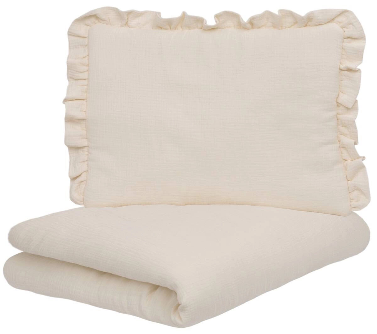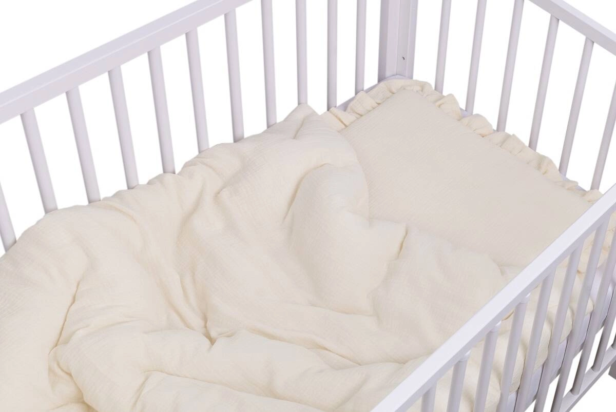 POŚCIEL MUŚLINOWA z falbanką 120x90 kołderka + poduszka WYPEŁNIENIE