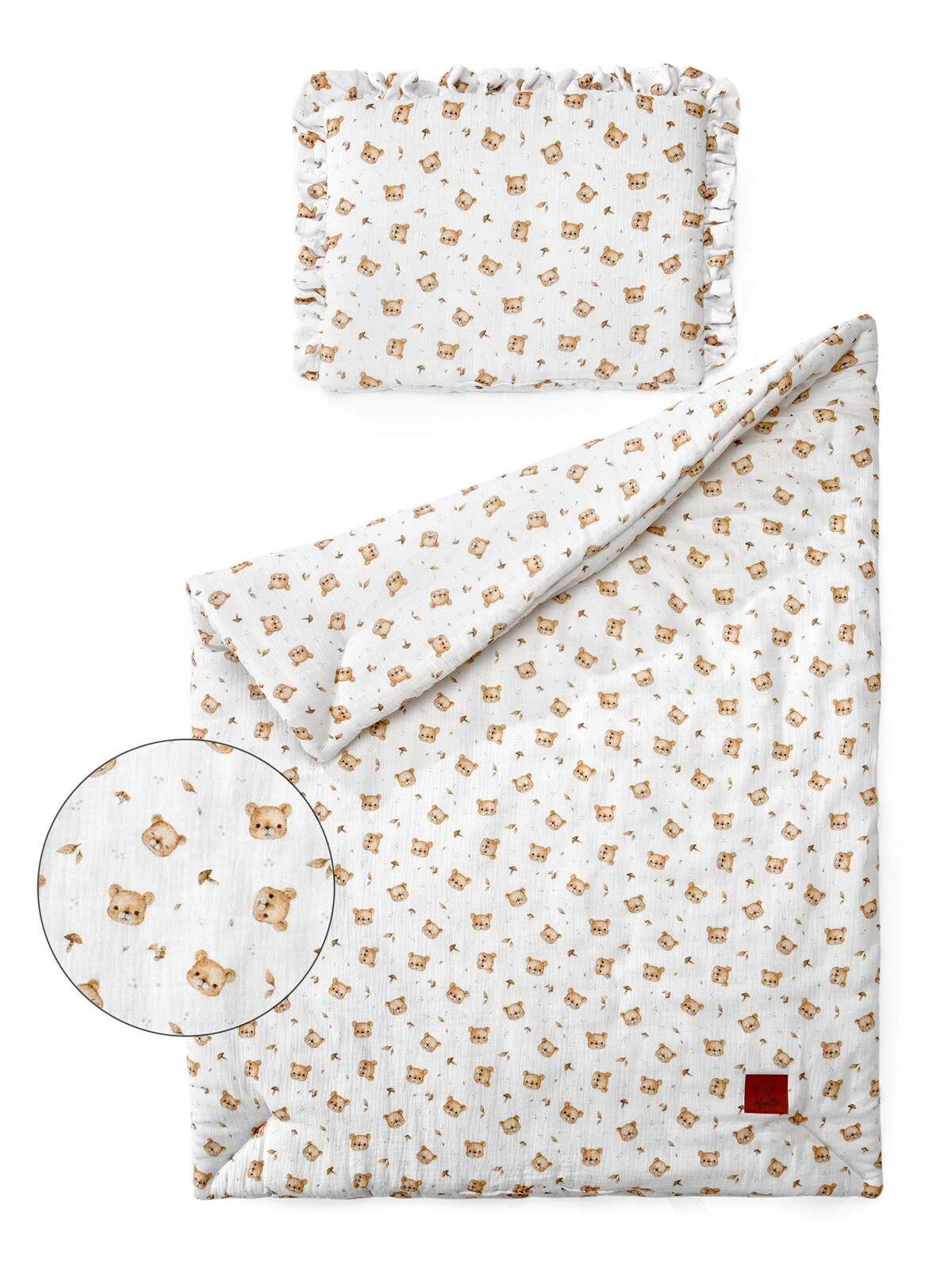 POŚCIEL MUŚLINOWA z falbanką 120x90 kołderka + poduszka WYPEŁNIENIE "TEDDY BEAR"