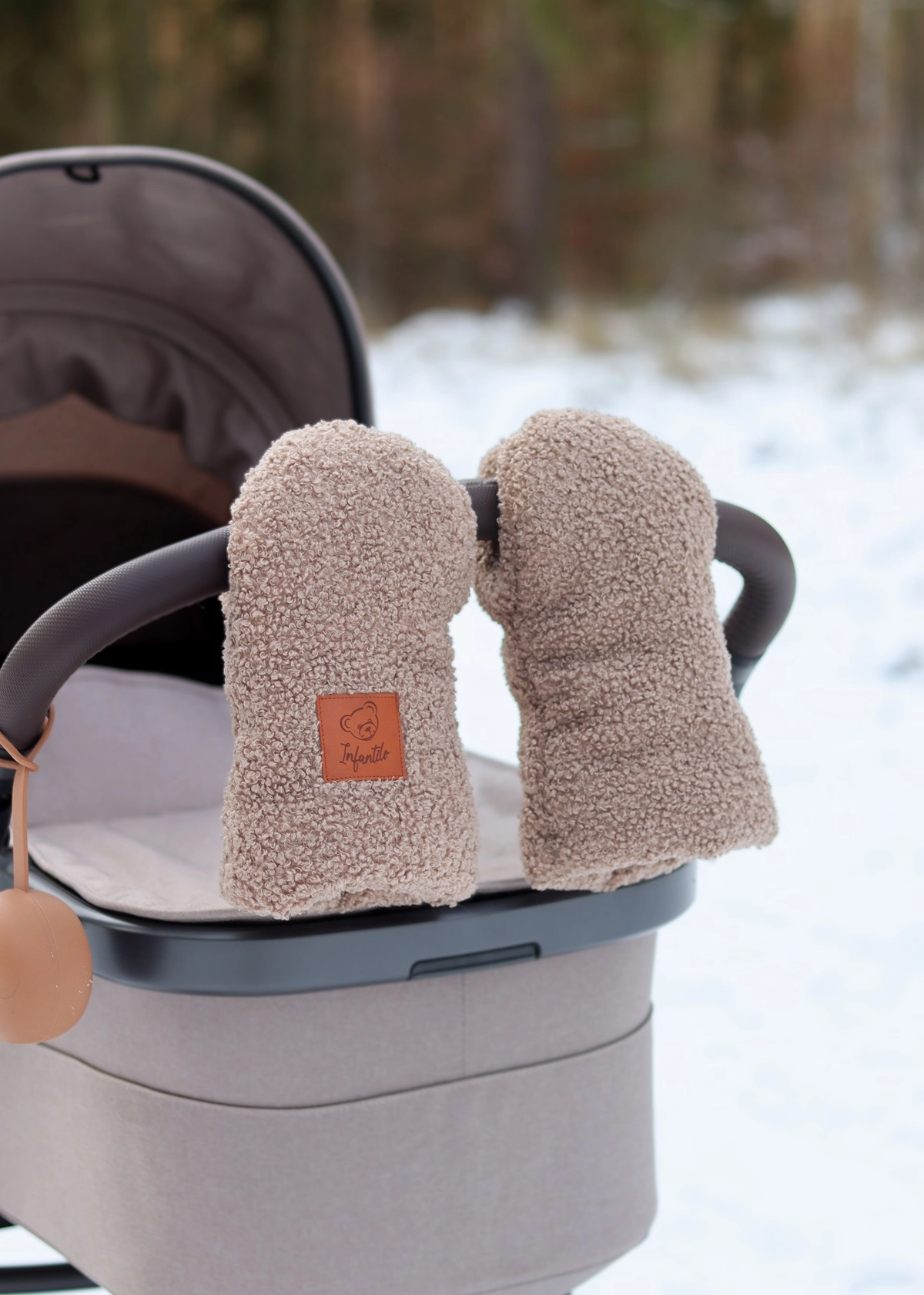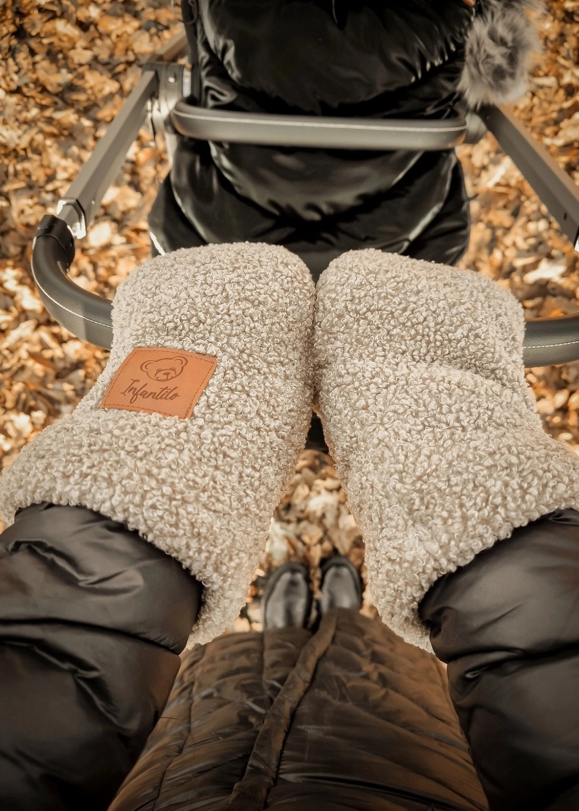 Rękawice do wózka z tkaniny Baranek Boucle – ciepło i wygoda w każdych warunkach