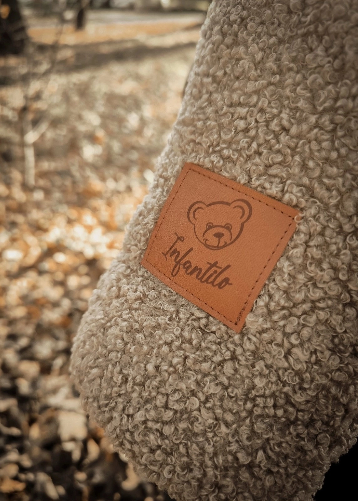Rękawice do wózka zostały uszyte z miękkiej i niezwykle przyjemnej w dotyku tkaniny BARANEK BOUCLE, która nadaje im wyjątkowy, modny wygląd. Wnętrze wykończone zostało welurem bawełnianym, delikatnym dla skóry i jednocześnie bardzo komfortowym w użytkowaniu.
