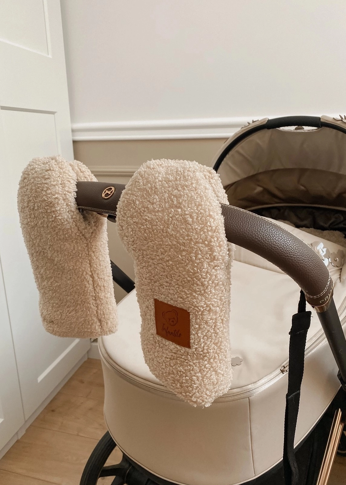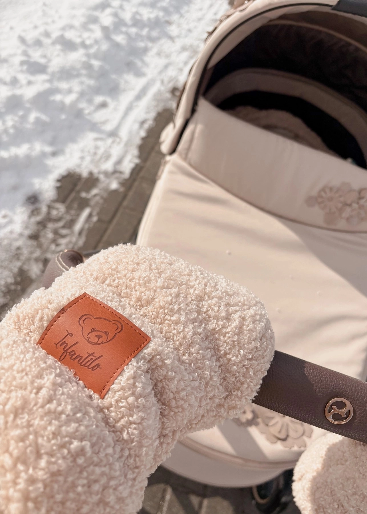 Rękawice do wózka z tkaniny Baranek Boucle – ciepło i wygoda w każdych warunkach