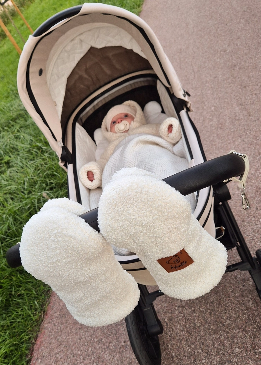 Rękawice do wózka z tkaniny Baranek Boucle – ciepło i wygoda w każdych warunkach