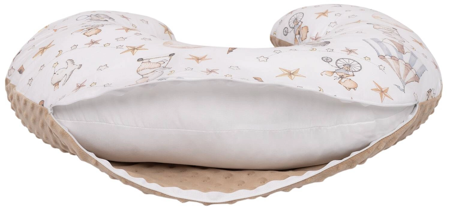 Miękkie wypełnienie z kulki silikonowej pozwala na dostosowanie się poduszki do kształtu ciała dziecka, dzięki czemu zapewnia wygodną pozycję podczas karmienia zarówno matce jak i dziecku.