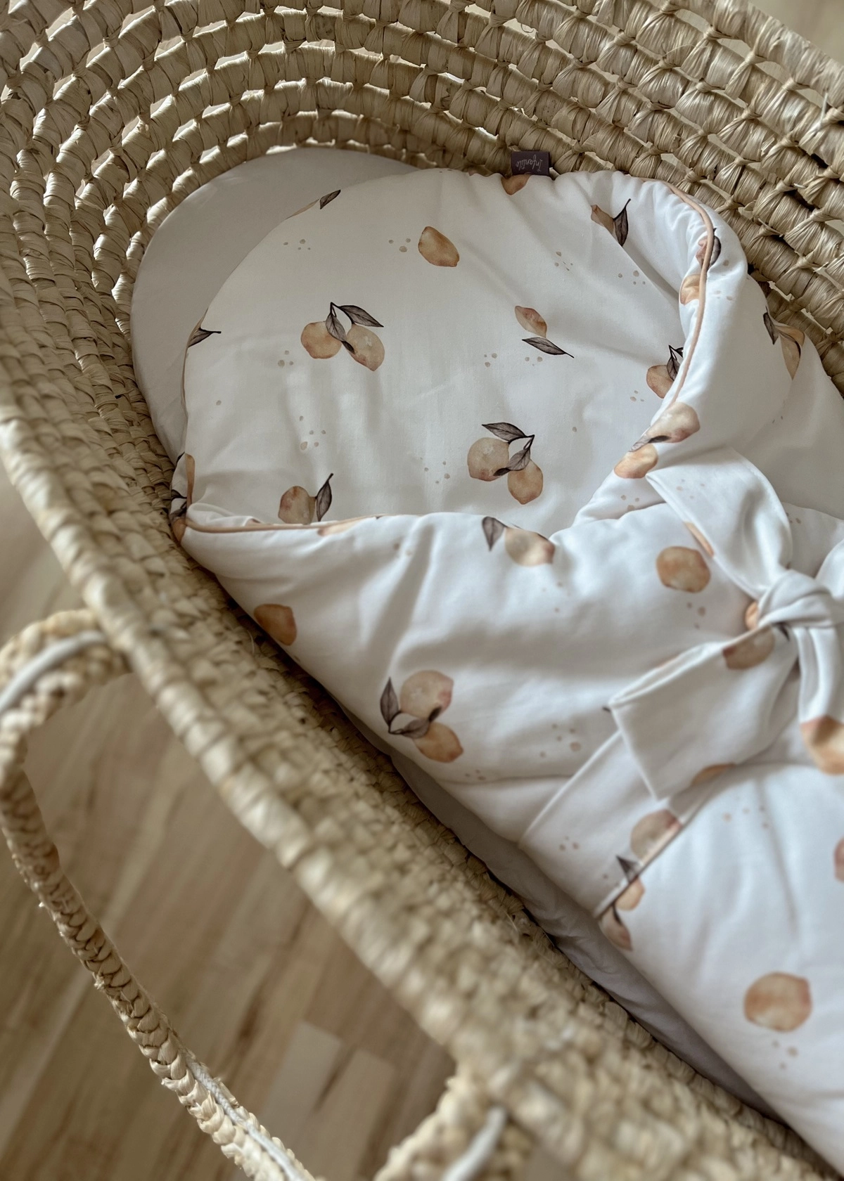 Rożek posiada usztywnienie w postaci maty kokosowej obszytej białym materiałem, która umieszczona jest w kieszonce z tyłu beta. Mata jest wyjmowana. Dzięki temu, po jej wyjęciu możemy stworzyć otulacz idealnie dopasowany do maluszka. Zyskujemy tym samym produkt dwa w jednym: rożek usztywniany oraz miękki.