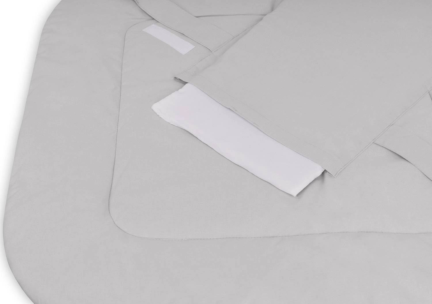 Rożek usztywniany jest matą kokosową, obszytą estetyczną, białą poszewką. Matę możemy wyjmować z rożka i tym samym zyskujemy możliwość użytkowania go jako rożek miękki lub otulacz.