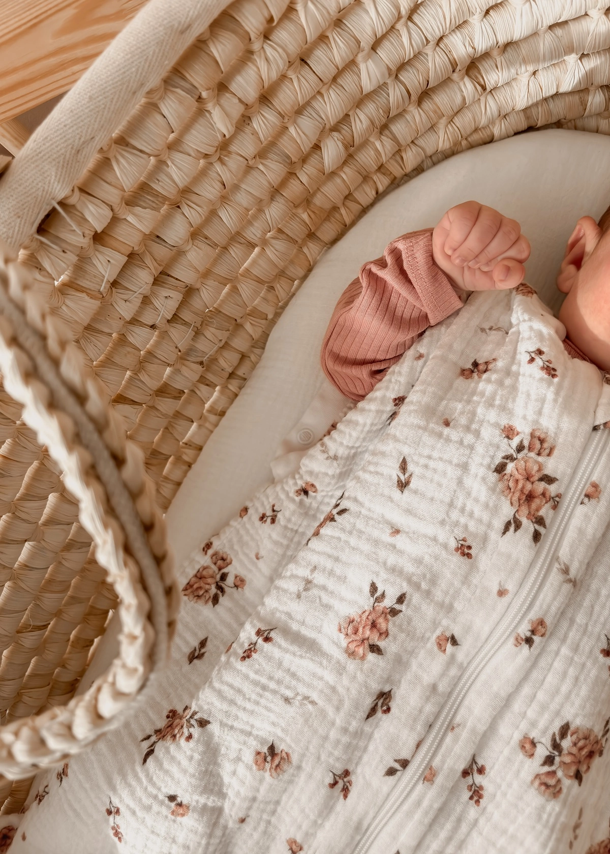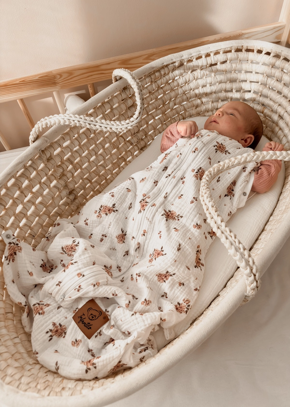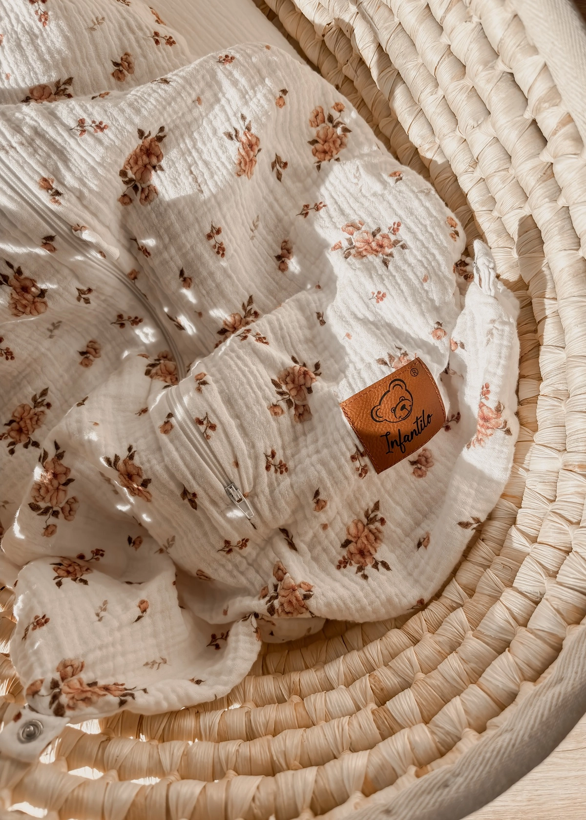 Śpiworek do spania muślinowy PREMIUM light LITTLE FLOWERS