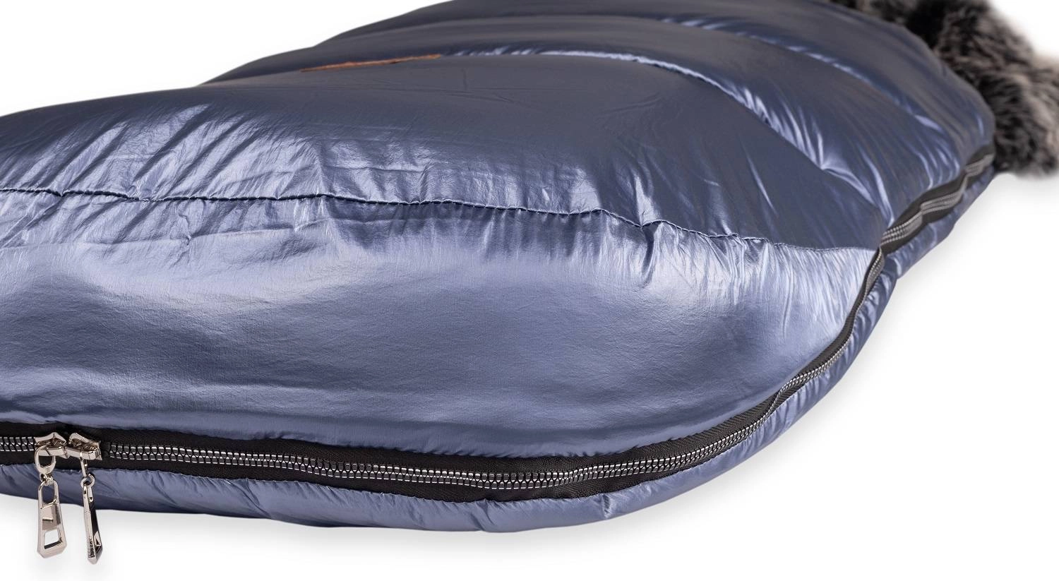 Trójwarstwowy, wodoodporny śpiworek do wózka spacerowego FLUFFY PREMIUM wykonany został z cienkiego, gładkiego ortalionu, odpornego na przemakanie - zbudowanego z bardzo dużej ilości gęsto tkanych nitek.