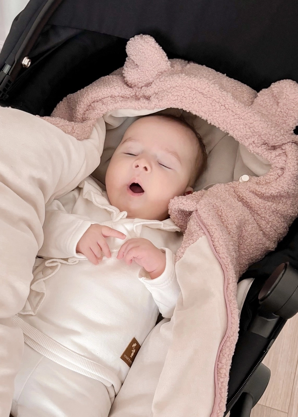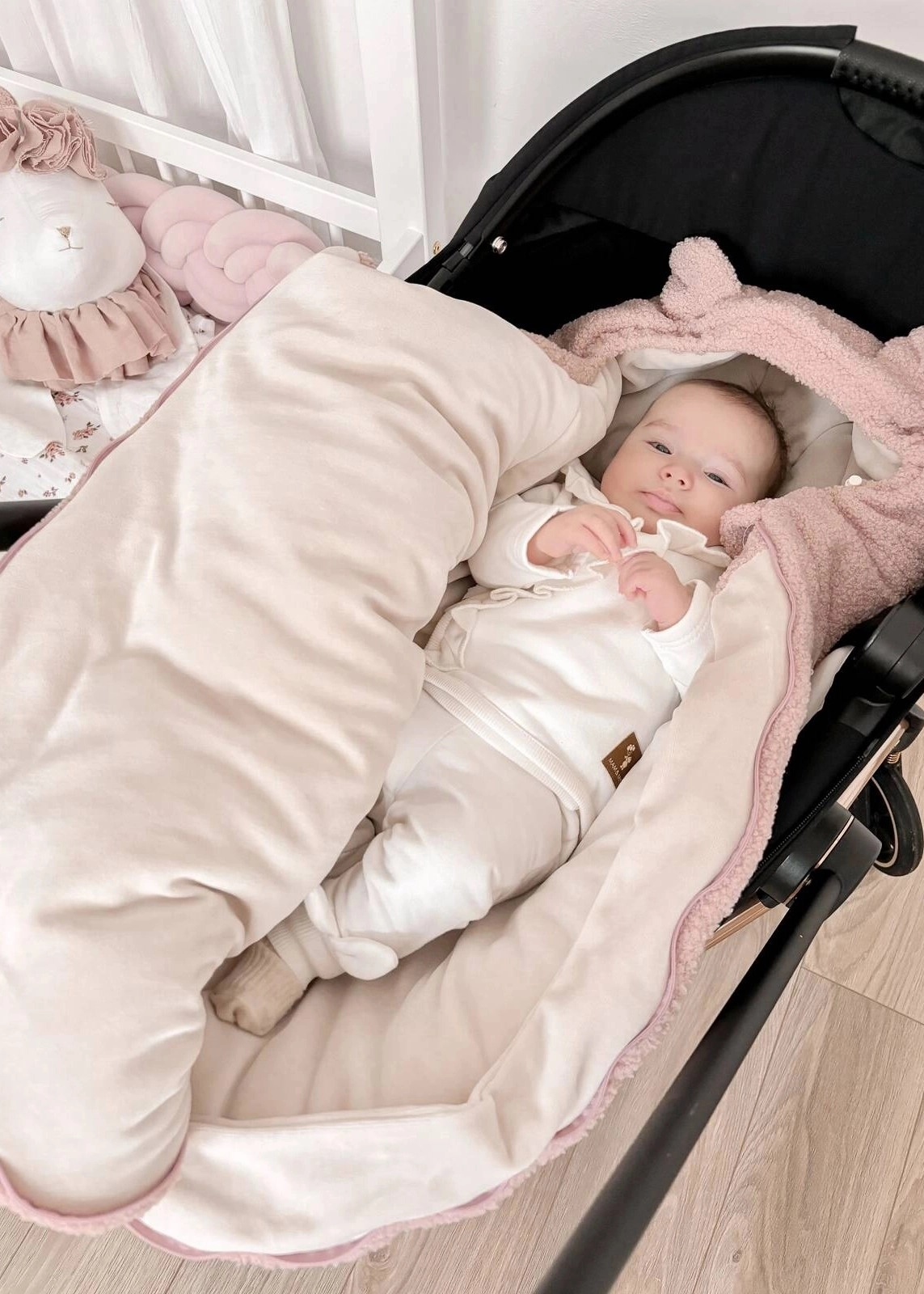 • Miękki, delikatny i niezwykle ciepły śpiworek, sprawdzi się idealnie w wózku - gondoli, spacerówce oraz foteliku samochodowym.