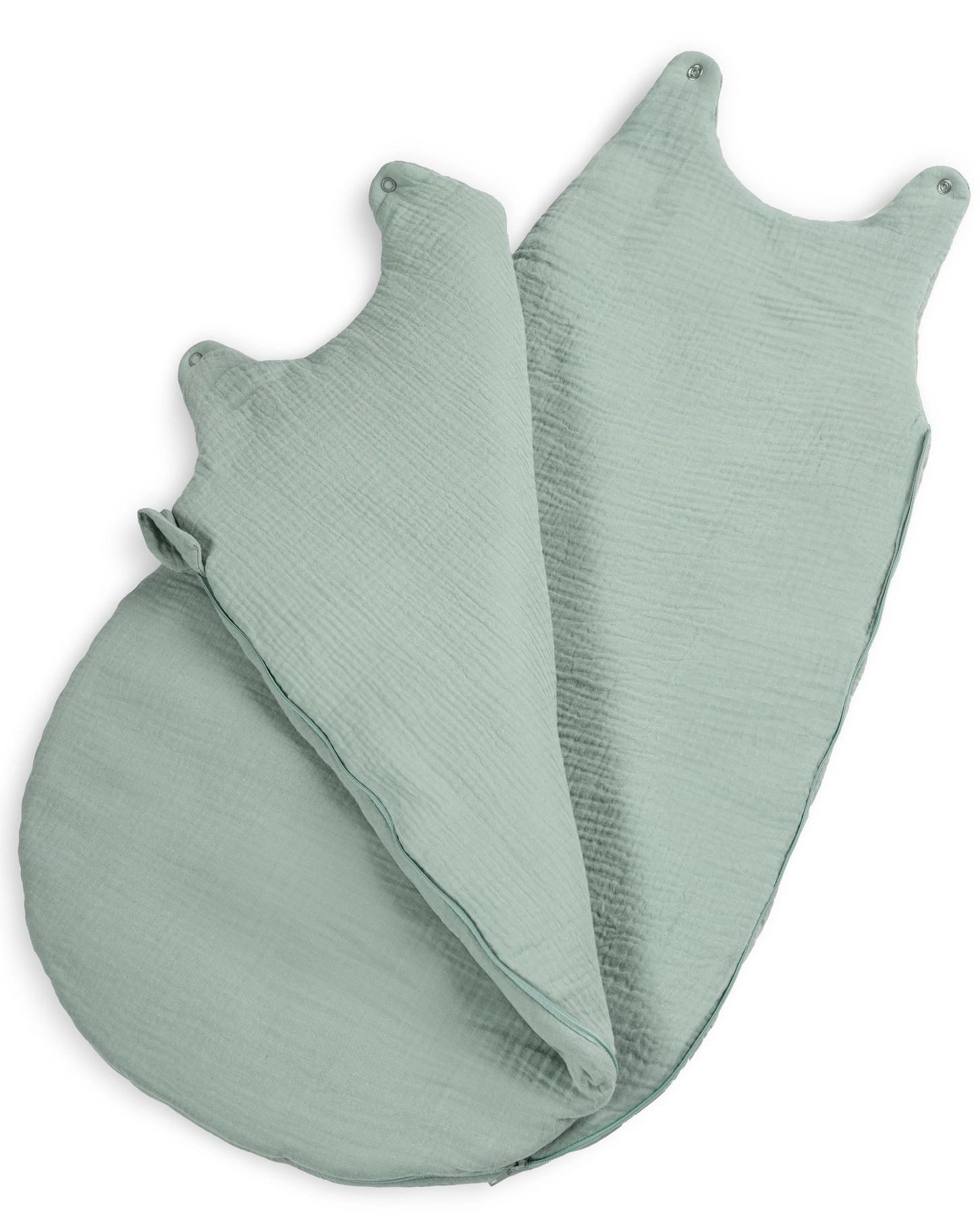 Ciepły i oddychający – śpiworek wykonany z dwóch warstw wysokogatunkowego muślinu bawełnianego double gaze (100%), wypełniony antyalergiczną ovatą silikonową. Skala TOG 2.5 – idealna na chłodniejsze pory roku.