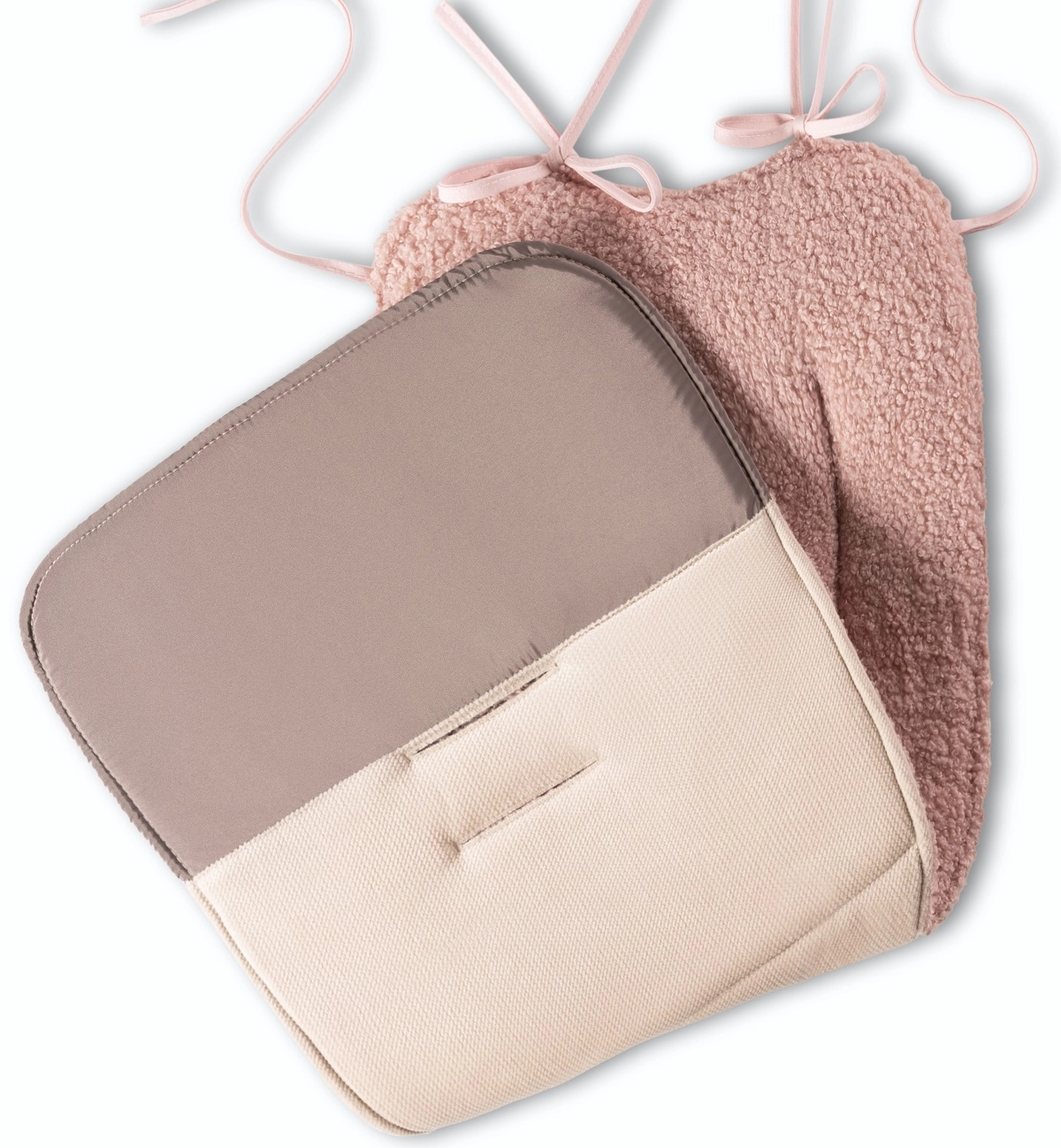 Uniwersalne dopasowanie - Nacięcia na pasy umieszczone na różnych wysokościach i szerokościach umożliwiają dopasowanie wkładki do większości modeli wózków. Precyzyjne obszycia wykonane specjalistyczną maszyną zapobiegają pruciu się materiału.