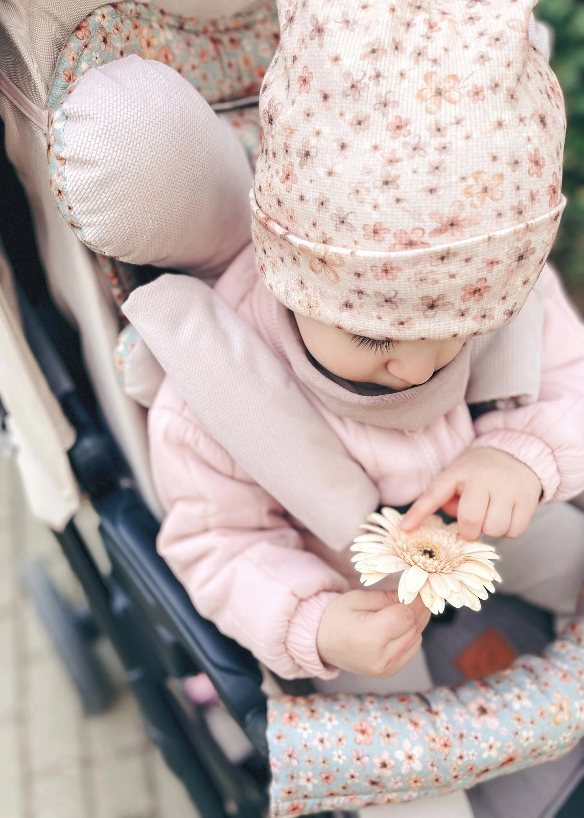 Nasza wkładka do spacerówki wykonana z miękkiej pianki o grubości 1,5cm, bawełny premium i przyjemnego Velvetu to idealne połączenie, które łączy wygodę, estetykę i funkcjonalność.