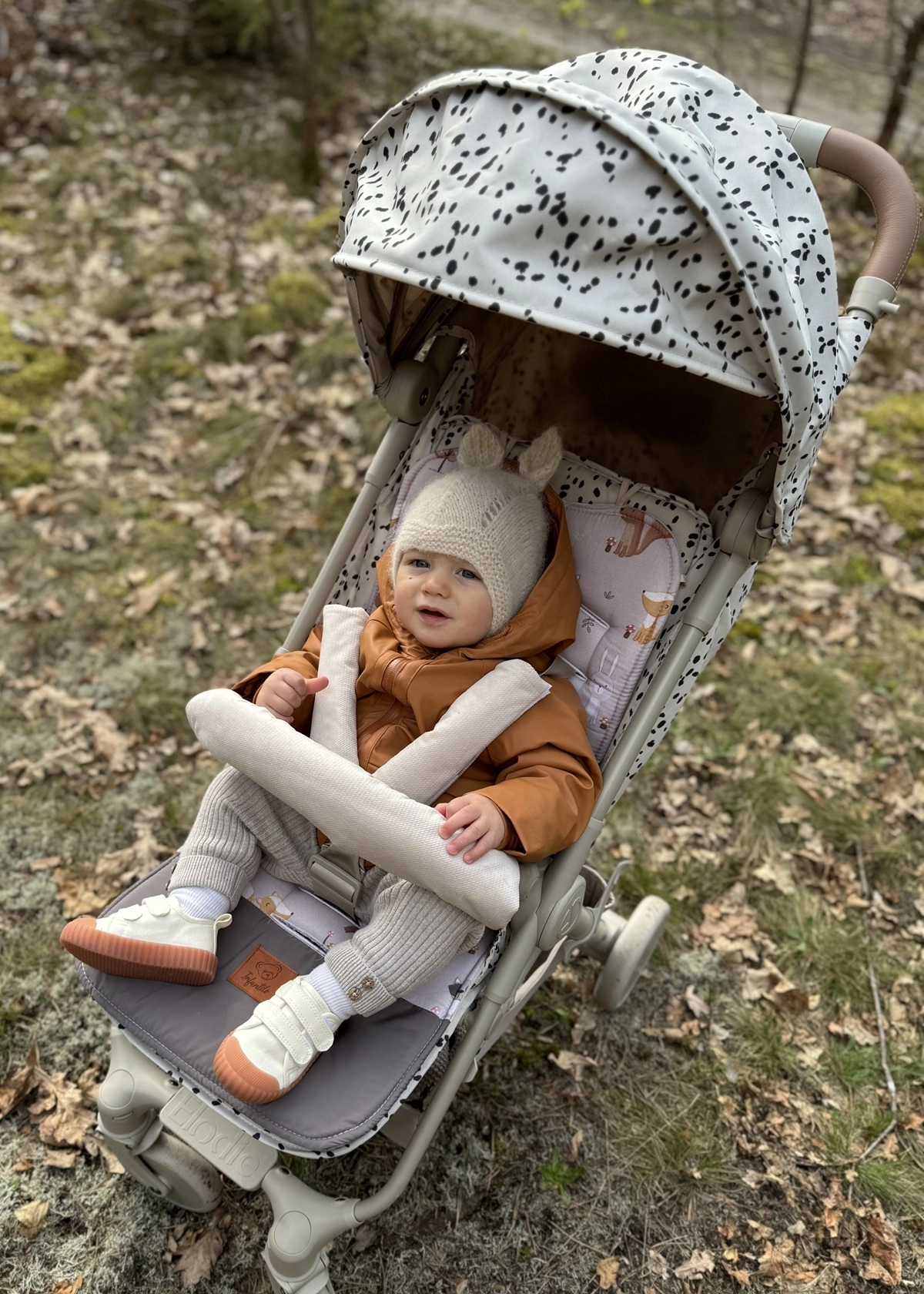 Nasza wkładka do spacerówki wykonana z miękkiej pianki o grubości 1,5cm, bawełny premium i przyjemnego Velvetu to idealne połączenie, które łączy wygodę, estetykę i funkcjonalność.
