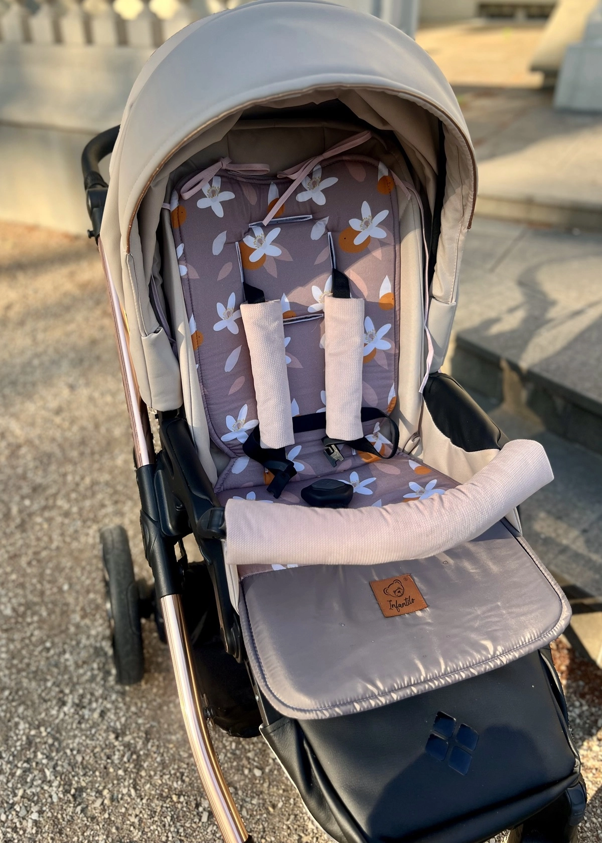Nasza wkładka do spacerówki wykonana z miękkiej pianki o grubości 1,5cm, bawełny premium i przyjemnego Velvetu to idealne połączenie, które łączy wygodę, estetykę i funkcjonalność.