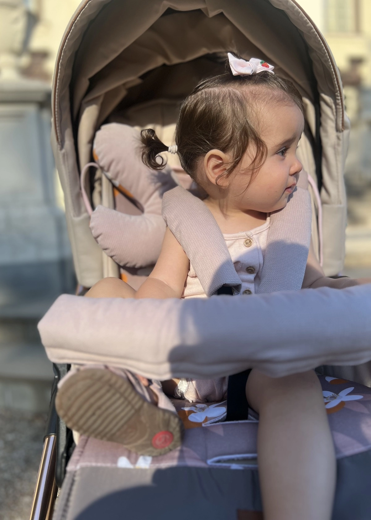 - Uniwersalny rozmiar – pasuje do większości modeli spacerówek, dodatkowo pionowe wycięcia na pasy dają możliwość idealnego dopasowania pasów do wielkości dziecka.